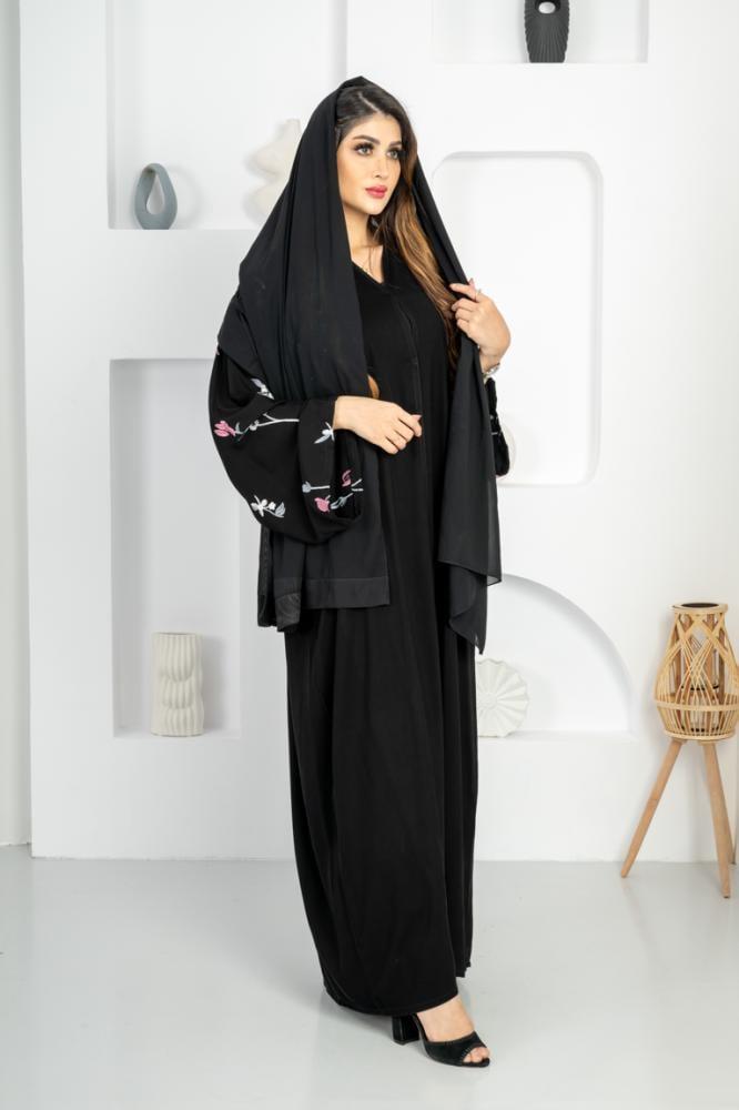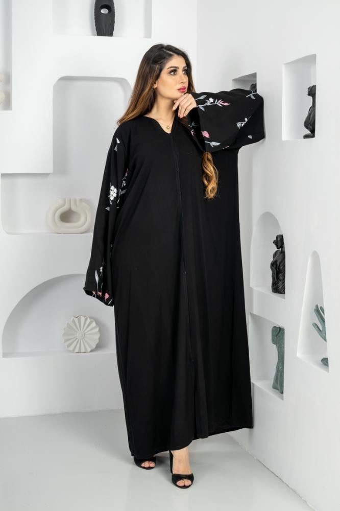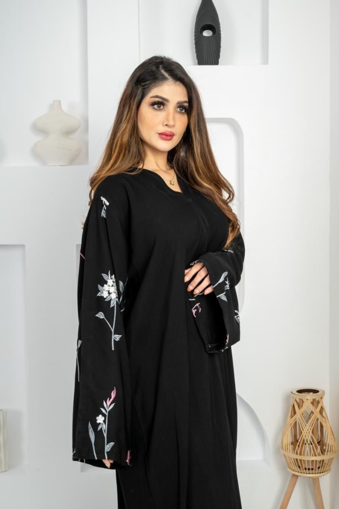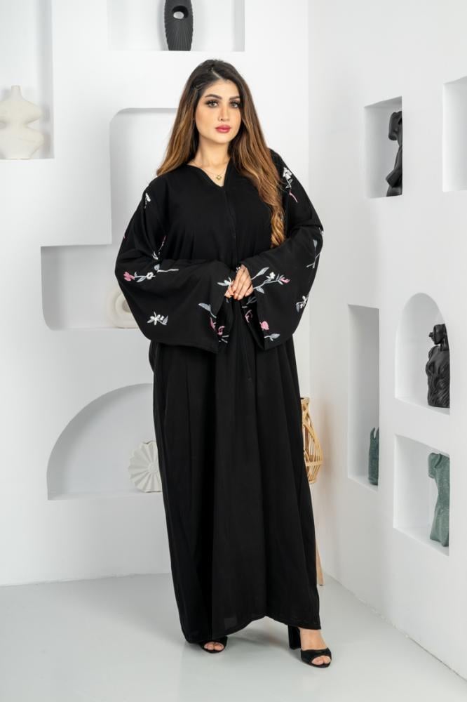 وصف المنتج: عباية سادة رقيقة وناعمة الملمس، منسوجة من قماش الكتان والصيفي، بموديل مريح يميزها كم مربع مع تطريز مشجر انيقة ، العباية ملائمة للنزهات والعمل